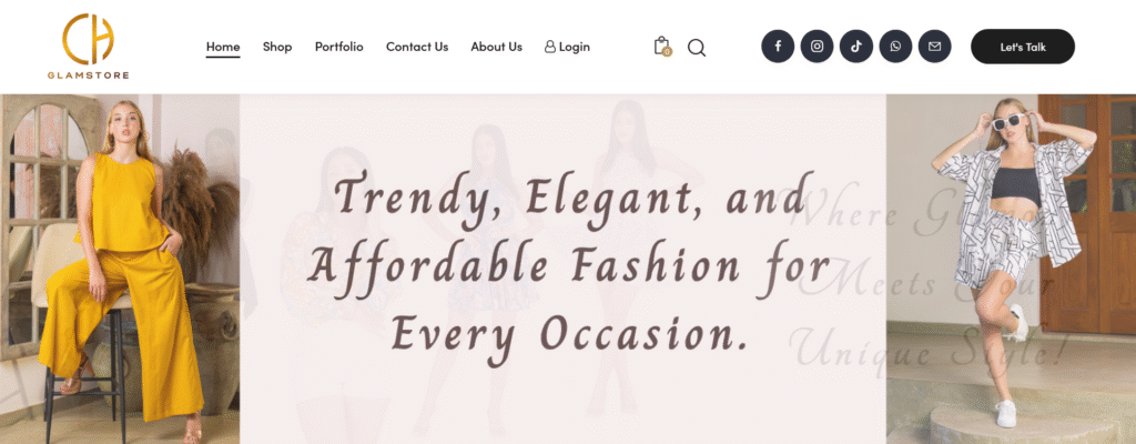 Custom WordPress design reflecting CH Glamstore’s unique branding.