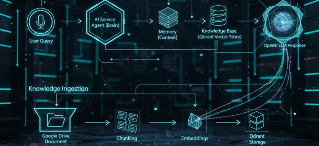 The AI-Powered Knowledge Agent is a cutting-edge research and development project by ArkStatic, designed to revolutionize digital customer support through Retrieval-Augmented Generation (RAG).Unlike traditional chatbots, this intelligent system provides real-time, context-aware responses grounded in an organization’s private knowledge base — ensuring accuracy, trust, and scalability.The agent autonomously retrieves company-specific data, interprets user intent, and delivers human-like, relevant answers powered by OpenAI and vector-based search intelligence.